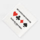 Bridge players of all ages who love to play bridge / duplicate bridge will enjoy this paper napkin featuring the four card suits along with the saying "One Can Never Spend Too Much Time Playing The Game Of Bridge". Memorable bridge geek humour paper napkin for any avid bridge player who just can't enough of bridge at your next bridge-themed event!