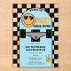 A cute cool birthday invitation design. A cute "One cool dude" happy themed first birthday party invitation. A happy cool skateboard themed birthday invitation that can be customized to your details.