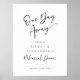 Modern Welcome Rehearsal Dinner Sign. Personalised Simple Minimalist One Day Away Sign. Just click the customise further link, shown under the text personalisation area on the right, and choose your custom colour background. This sign poster template makes it fast and easy to create stunning additions to your wedding decor. Signs can be enlarged, there are many sizes to choose from, as well as options for custom framing and matting.