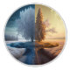 The art featuring one day in winter versus another day in autumn, created in the style of digitally manipulated images, showcase a stunning and realistic depiction of light. The contrasting balance and highly detailed elements come together to offer viewers a visually captivating experience, immersing them in the distinct atmospheres of both seasons.