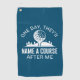 The golf towel exceeded my expectations! My husband actually approved of it! He liked the picture quality, thickness and overall usefulness of the golf towel I ordered to commemorate his lowest ever golf score. He liked it so well that I ordered 8 more towels with photos of his home golf course. Each one of the eight has the name of one of his golf group members. I will give them as party favors at my husband's 70th birthday party later this year. The different names were easy to add because the Zazzle template is so very easy to use. The colors were bright and authentic in all 9 of the towels that I made. The one of the 9 that I ordered has come out of the wash and line dry looking great.