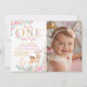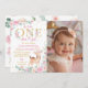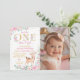 One-deerful Pink Floral Birthday Photo Invitation