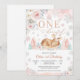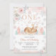 Celebrate your little ones first birthday with this charming "ONE Deerful- winter floral invitation. Featuring a sweet deer with a flower crown, pastel trees, roses, and sparkling snowflakes, this whimsical design blends woodland and seasonal elegance. Perfect for a girls first birthday party, it sets a magical tone for your celebration while providing all the essential event details in style.