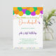 Celebrate your baby’s first birthday with this colourful and cheerful invitation! Featuring vibrant orange, green, yellow, and purple balloons, this playful design sets the perfect tone for a fun-filled party.