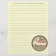 Recipe paper featuring optional lines, which can be removed. Bottom features an illustration of one dozen colourful French macarons in a beige gift box with a delicate brown ribbon. Personalise with your name under illustration. Also personalise text at top.