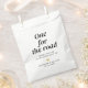 "One for the Road" wedding snack favour bags with customisable text. The design features a mix of handwriting font and modern typography with a cute little gold heart. Personalise the design by replacing the names and wedding date.