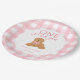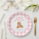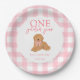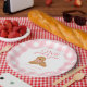 Add a sweet touch to your girl's first birthday with this pink gingham paper plate, perfect for a golden doodle themed celebration. Featuring the phrase "One Golden Year" and a hand drawn golden doodle puppy, this design can be personalized with your child’s name and party date. It’s a fun and easy way to tie your pink puppy party theme together for snacks, cake, and more.