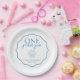 Celebrate your little one's One Golden Year in sweet puppy style with this round paper plate. A scalloped border centre that features a gingham paw print and editable text for your little one's name and first birthday date. Perfect for cake slices, snacks, and photo ready table settings at any golden retriever themed party.
