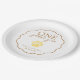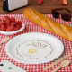 Celebrate her One Golden Year in sweet puppy style with this round paper plate. A scalloped border centre that features a gingham paw print and editable text for your girl's name and first birthday date. Perfect for cake slices, snacks, and photo ready table settings at any golden retriever themed party.