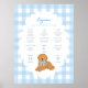 Celebrate your little one’s big milestones with this adorable “My Golden Year” first birthday poster! Featuring a soft blue gingham background, scalloped white frame, and a sweet golden doodle puppy with a blue bow, this boy’s birthday milestone sign is the perfect way to capture all of your child’s favorite things, from favorite foods to first words.