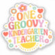Playful retro lettering with flowers and hearts celebrating kindergarten teachers with creativity and joyful classroom spirit. A cheerful statement for educators who love teaching young children in a warm and friendly learning environment.
