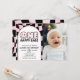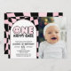 One Happy Babe Groovy Pink Check Photo Birthday Invitation
