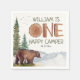 Cute and unique woodland, bear - one happy camper-1st birthday name birthday napkins.