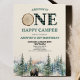 ONE Happy Camper Bear Green 1st Birthday Party Invitation