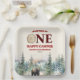 This is a Red ONE Happy Camper Is Turning One Woodland Forest Bear 1st Birthday Party Paper Plates!