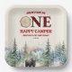 ONE Happy Camper Bear Red 1st Birthday Party Paper Plate
