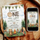 Set against a backdrop of lush woodland pine trees a rustic campfire and a cosy tent, this invitation captures the essence of a whimsical forest adventure. Whether you're hosting a backyard campout or a woodland-themed party, this invitation will surely delight your guests and set the stage for a fun-filled day of celebration.
