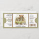 Make your little one's special day a memorable one with this unique and whimsical One Happy Camper First Birthday admit one ticket invitation! This invitation features a cute brown bear and moss green camper van with pine tree pattern on the backside.