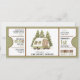 Make your little one's special day a memorable one with this unique and whimsical One Happy Camper First Birthday admit one ticket invitation! This invitation features a cute brown bear and moss green camper van with pine tree pattern on the backside.