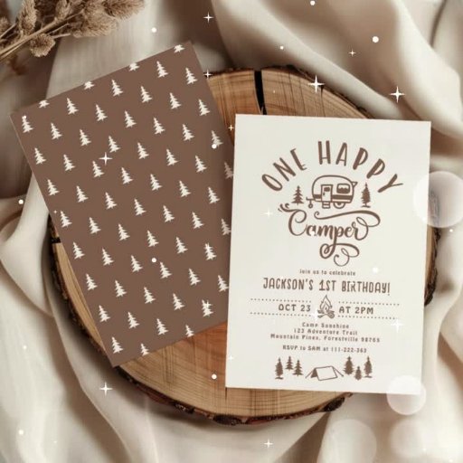 One happy camper Minimalist forest 1st birthday Invitation