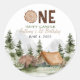 One Happy Camper Mountain Forest Bear 1st Birthday Classic Round Sticker