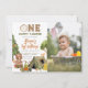 One Happy Camper Wood Bear Photo Boys 1st Birthday Invitation
