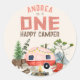 One Happy Camper Woodland Girls 1st Birthday Pink Classic Round Sticker