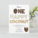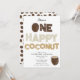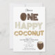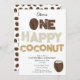 A beautiful hand drawn coconut birthday invitation design. A cute "One happy coconut" coconut themed first birthday party invitation. A cute coconut summer themed birthday invitation that can be customized to your details.