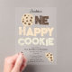 A beautiful hand drawn chocolate chip cookie birthday invitation design. A cute "One happy cookie" chocolate chip cookie themed first birthday party invitation. A cute cookie themed birthday invitation that can be customized to your details.