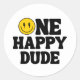 One Happy Dude Boy's Retro 1st Birthday Classic Round Sticker