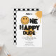 A cute happy birthday invitation design. A cute "One happy dude" happy themed first birthday party invitation. A happy dude themed birthday invitation that can be customized to your details.