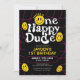One Happy Dude Neon Smile Face Boy 1st Birthday Invitation