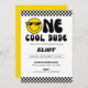 Introducing our "One Cool Dude" first birthday party invitation, perfect for your little man's special day! This playful and lively design features bright and cheerful emojis, as well as a bold black and yellow colour scheme that is sure to catch everyone's eye.