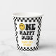 These One Happy Dude Smile Face Boy First Birthday Paper Cups feature black and white checkers with a smile face and is perfect to decorate your cool little dude’s first birthday party!