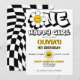 One happy girl retro daisy 1st birthday party invitation template, girl's 1st birthday party invitations, retro groovy daisy party, black white and yellow retro party theme, retro checkers, hippie birthday party invitations