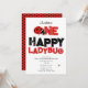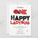 A beautiful hand drawn ladybug birthday invitation design. A cute "One happy ladybug" red and black themed first birthday party invitation. A cute ladybug themed birthday invitation that can be customized to your details.