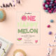 A beautiful hand drawn watermelon birthday invitation design. A cute "One happy melon" watermelon themed first birthday party invitation. A beautiful watermelon summer themed birthday invitation that can be customized to your details.