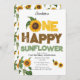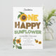 A beautiful watercolor sunflower birthday invitation design. A cute "One happy sunflower" floral sunflower themed first birthday party invitation. A cute sunflower themed birthday invitation that can be customized to your details.
