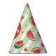 Discover the ultimate summer party accessory with the "One in a Melon" Cute Summer Fruit Party Hat, a delightful addition to any birthday celebration. This birthday party hat boasts a charming watermelon theme, featuring a beautiful watercolor design of juicy watermelons complemented by whimsical lime green line strokes, creating a fresh and vibrant look. Designed for the sunny season, it blends a playful mix of red and lime green colors, capturing the essence of summer fun and fruity adventures. Perfect for watermelon-themed parties or simply adding a splash of color to your summer festivities, this hat promises to make your celebration uniquely memorable.