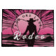 One Last Rodeo Bachelorette, this design features a cowgirl in a retro pink and black sunset look. Ideal for any bachelorette party.
