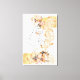 One line face art with peach flower stains gold canvas print