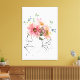 One line face art with pink botaical flower eye canvas print