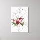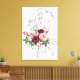 One Line Girl with Closed Eyes – Pink & Maroon Floral Watercolor Canvas Print