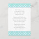 Enclosure card for baby shower invitations includes a request for guests to bring a book in lieu of a card. Includes a light aqua blue and white polka dot border with grey text.