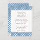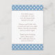 Enclosure card for baby shower invitations includes a request for guests to bring a book in lieu of a card. Includes a slate blue and white polka dot border with mocha brown text.