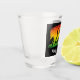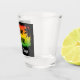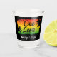ONE LOVE tropical palm trees over a rasta flag coloured sunset rum shot glass. There's customisable text underneath where you can add your own names or message. It's perfect for Caribbean beach weddings!