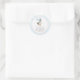 Featuring a delightful illustration of a charming duck in a bow tie and party hat, this round sticker is framed by a soft pastel blue gingham border for a whimsical and rustic look.