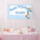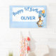 One lucky duck blue gingham 1st birthday party printed happy birthday banner , cute mallard duck with a party hat and balloons with soft pastel blue gingham border for boys 1st birthday party personalised decor happy birthday banner