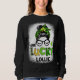 One Lucky Lollie Messy Bun Leopard St Patrick's Da Sweatshirt