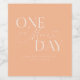 Minimalist wedding rehearsal dinner wine bottle label featuring typography text that says "one more day." The background is peach.